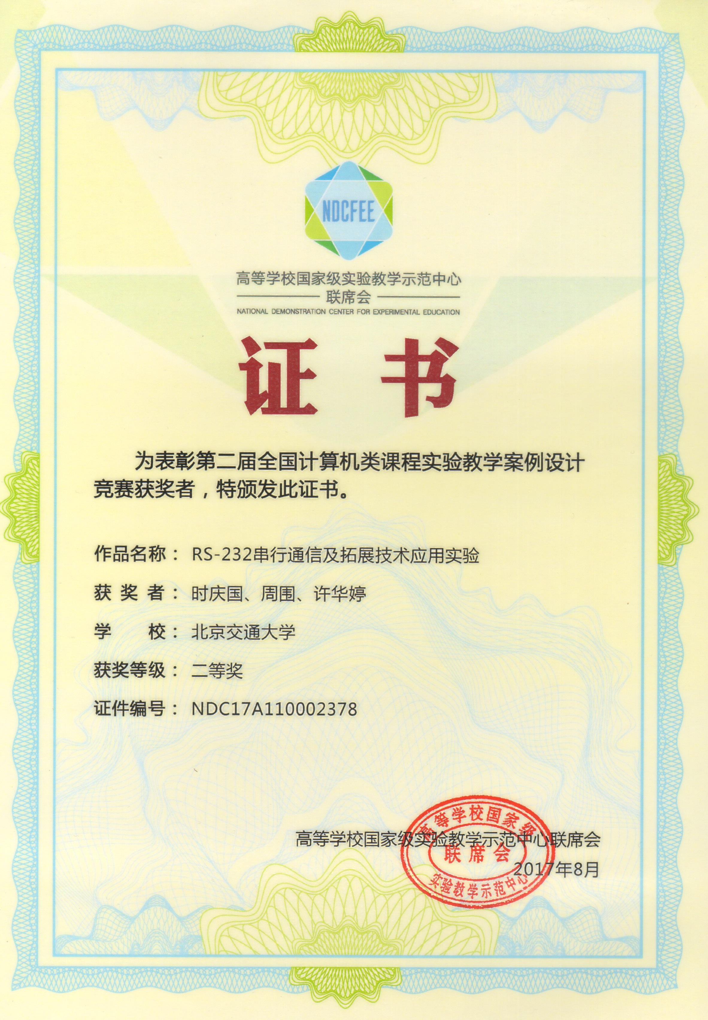 2017年11月11-12日,第十届全国高校计算机实践教学论坛暨第一届中国计算机实践教育学术会议在南京召开,有来自200余所高校的300余位教师参加。在本次学术会议上,贝博官网计算机基础教学基地时庆国、周围、许华婷老师开发的实验教学案例《RS-232串行通信及拓展技术应用实验》被评为二等奖。