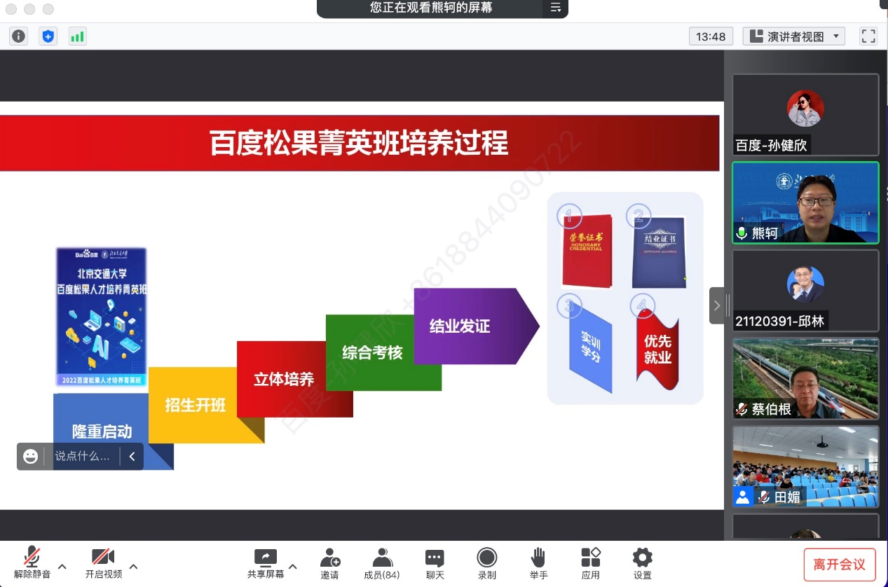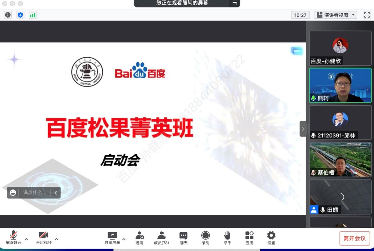 2022年9月25日上午,计算机与信息技术学院联合百度公司,面向2022级本科生成功召开了2022贝博官方bb艾弗森-百度松果人才培养菁英班启动会。贝博官方bb艾弗森贝博官方bb艾弗森院长蔡伯根、副院长熊轲、松果精英班班主任田媚、百度高校合作部副总监计湘婷、百度高校合作部高级经理张倩、百度松果精英班百度侧班主任孙健欣、乔文慧等出席了启动会。会议由熊轲副院长主持。